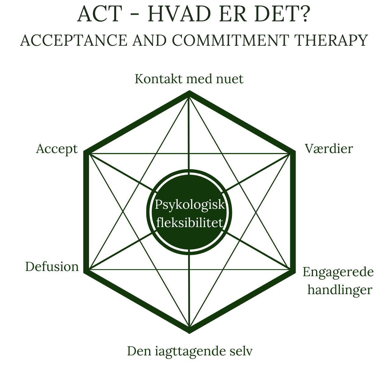 ACT står for Acceptance and Commitment Theray , som er en empirisk dokumenteret behandlingsmetode. ACT bygger på adfærdsterapi og kognitiv terapi og blev skabt af psykologen Steven Hayes og kollegaerne Kelly Wilson og Kirk Stroshal.